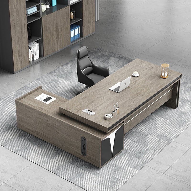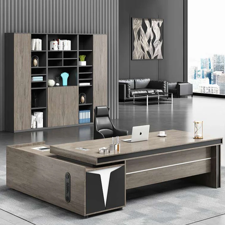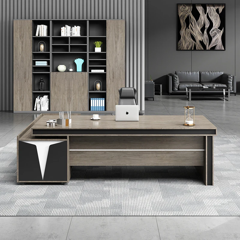 Get a stylish desk with a luxurious design for your private office. It will provide you with a very suitable space to keep your important files and papers from getting scattered and lost, as there is a side part that contains drawers and shelves to meet your different work needs.